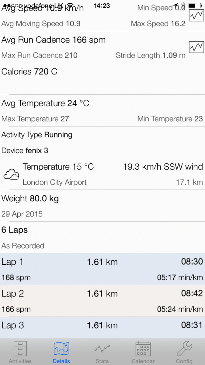 Most of the apps will let you see the basic data of an activity. For my taste, the Garmin iOS app probably fares the worst both in terms of look and data. You really only have basic data here as well as simple laps statistics. Also the look is extremely basic and not like a modern iOS app. The graphs are quite slow to come up as it seems to do a internet call. This is the case for all data, so if you are without internet connection, you won’t be able to review any activities, even one that you looked at in the past in the app.