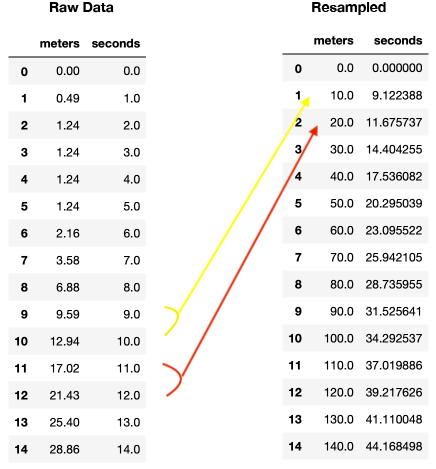 The first step to the algorithm is to sample the original activity at the 10 seconds interval. It sounds simple but in practice you need to make sure you interpolate between points correctly, and you account properly for pauses or large gaps in the data.