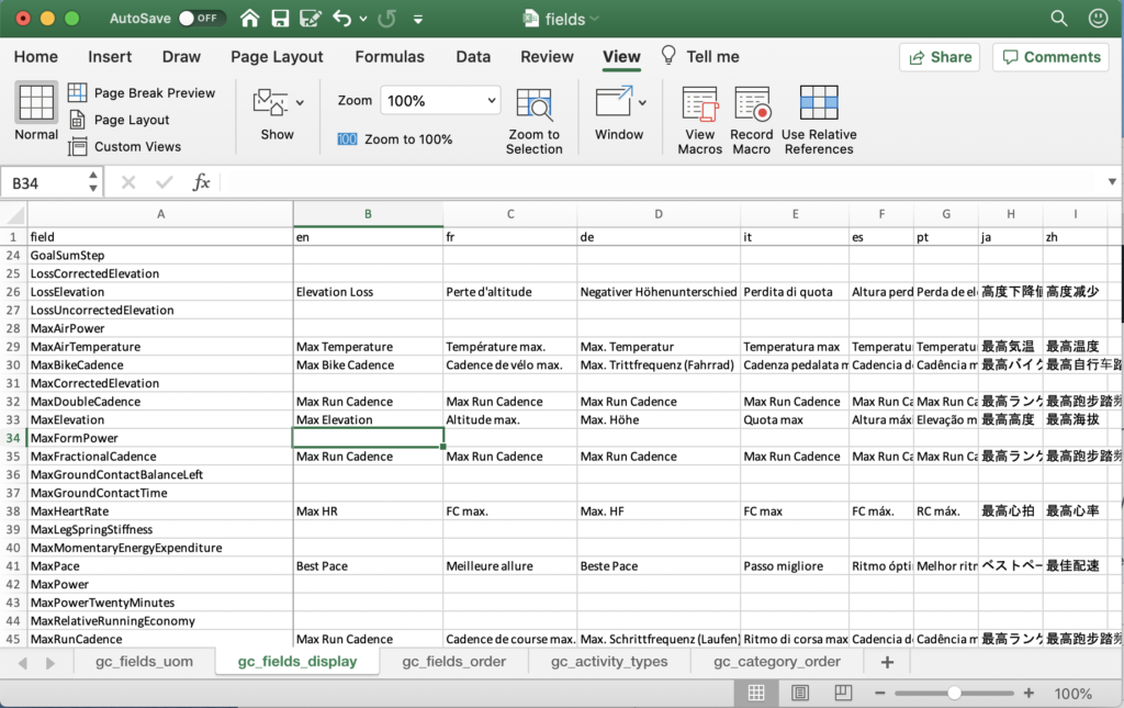 The excel file should be pretty self explanatory, the sheet gc_fields_display contains each of the translations. The column field is the internal key for ConnectStats and should not be modified.