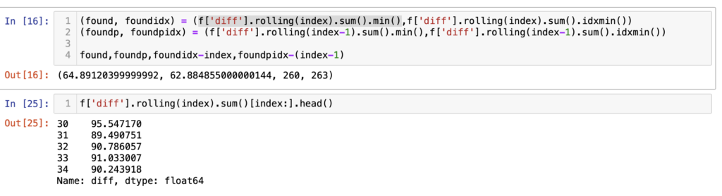 Or here use some of the pandas functions to identify quickly the index where a drop in value happened, which would have been quite a pain to implement in objective C just for the purpose of debugging…